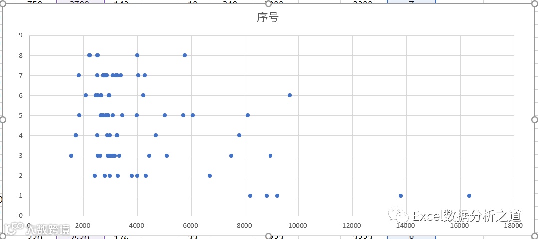 将F列的应发合计作为X轴,将辅助列N作为Y轴,绘制XY散点图,如下图: