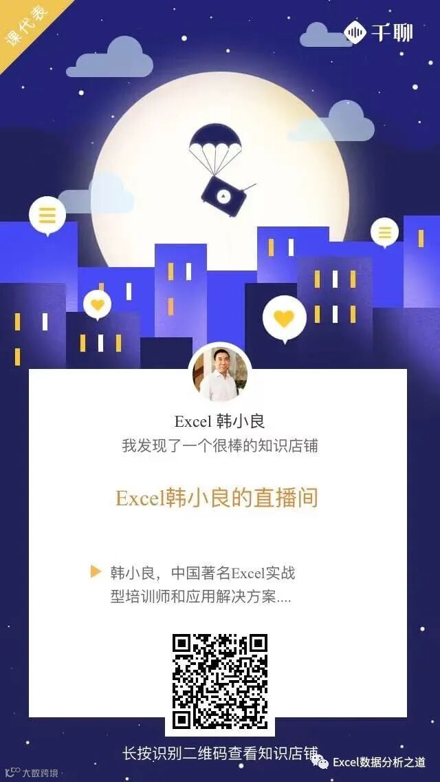 上百小时视频,系统学习Excel,系统学习数据分析,尽在千聊直播间。