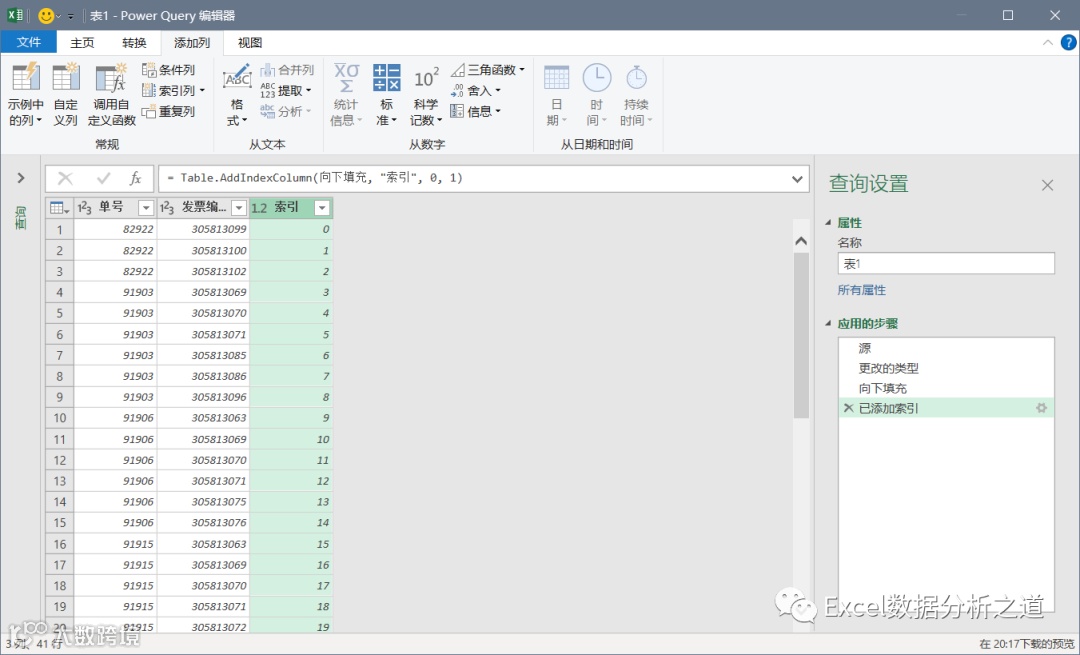 单击“索引列”命令,插入一个索引列: