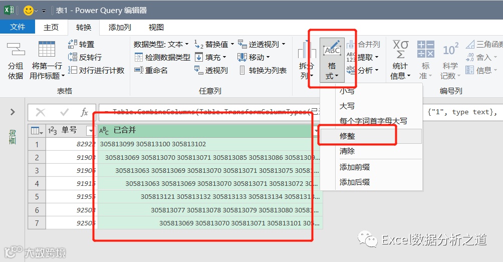 选择第二列开始的所有列,执行“合并列”命令,选择“空格”作为分隔符: