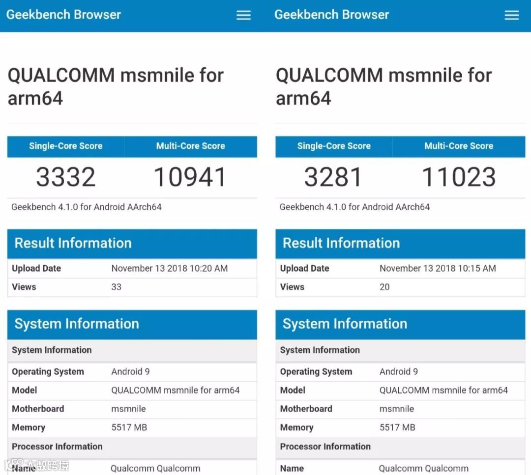 跑分方面,Geekbench骁龙855单核稳定在3300上下,多核11000上下,对比845平均成绩2400/8900涨幅很大;安兔兔855工程机362292分,是目前Android平台最高分,甚至和iPhone XS系列不相上下,具体说骁龙855 CPU小胜980,GPU超麒麟980很多,这回又是吊打的节奏?