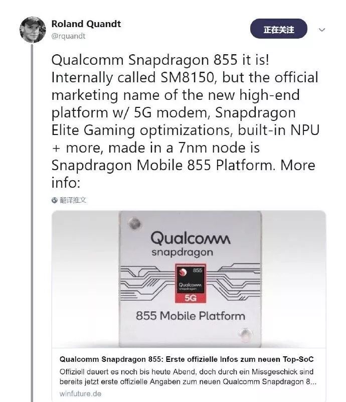 高通将于北京时间12月5日-7日举行第三届骁龙技术峰会,届时将发布全新的骁龙平台、5G和Windows 10 ARM芯片。现在外媒正式确认:下一代芯片叫做骁龙855,并不是此前流传的8150,并提前泄露了一些配置~相较980如何呢?