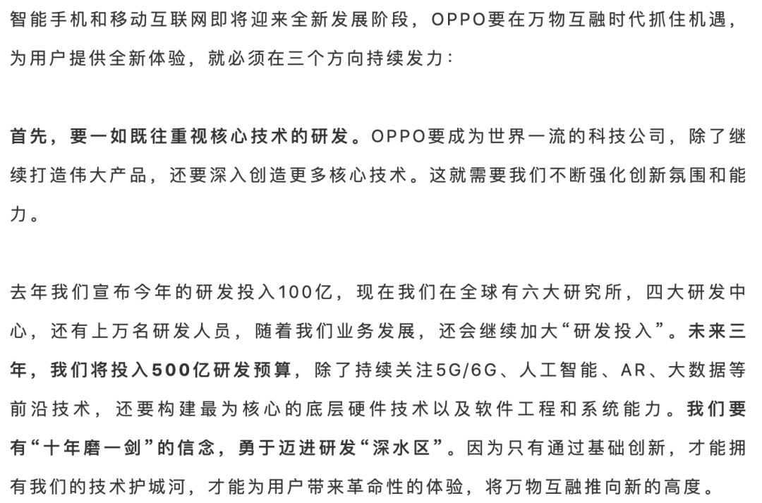 在今年2月,OPPO CEO特别助理还发布内部文章《对打造核心技术的一些思考》,透露OPPO布局了三大计划,分别为①关于自主芯片的“马里亚纳计划” ②涉及软件工程和扶持全球开发者的“潘塔纳尔计划” ③打造云服务的“亚马逊计划”。