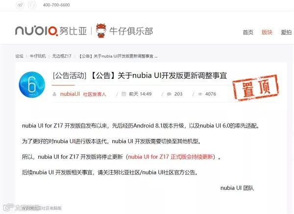 近日,努比亚在其官方论坛发布了“关于nubia UI开发版更新调整事宜”的公告:nubia UI for Z17 开发版将停止更新(nubia UI for Z17 正式版会持续更新)。