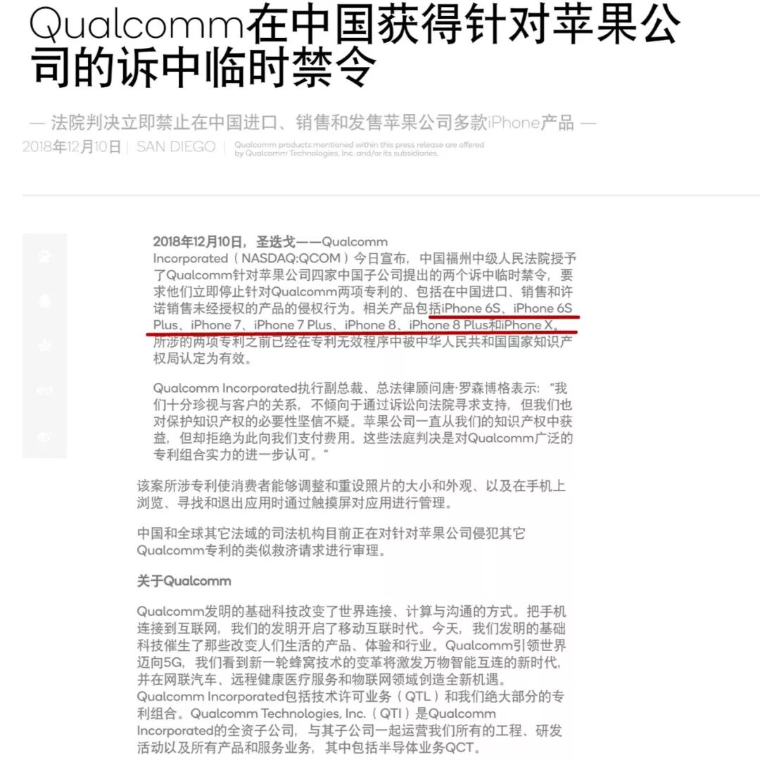 苹果方面的回应就比较“无辜”了,表示完全不能理解高通行为,因为iOS 12系统不存在侵犯高通相应专利的行为,并且首次声明了将采取的对策。