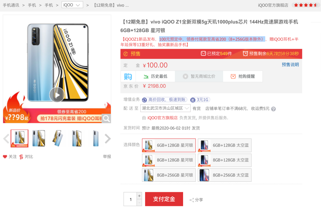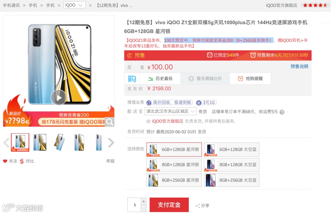 参数上,iQOO Z1:6.57英寸LCD单孔直屏,侧边指纹,144Hz屏幕刷新率,支持自定义切换,机身厚8.93mm,重194.78g,塑料后盖+塑料中框,前置16MP,后置48MP(三星GM1)+8MP超广角+2MP微距,联发科天玑1000+集成双模5G、5G+5G双卡双待,覆盖n1/n3/n41/n77/n78/n79,4500mAh,44W快充,LPDDR4x内存+UFS 2.1闪存,保留3.5mm耳机孔,双扬声器,全系标配全场景NFC。