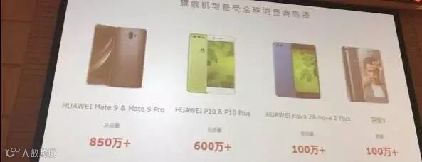 热门机型方面,Mate 9系列发货量超850万台,P10系列发货量超600万台,Nova 2系列发货量超100万台(上市不到一个月),荣耀9销量超过100万台。