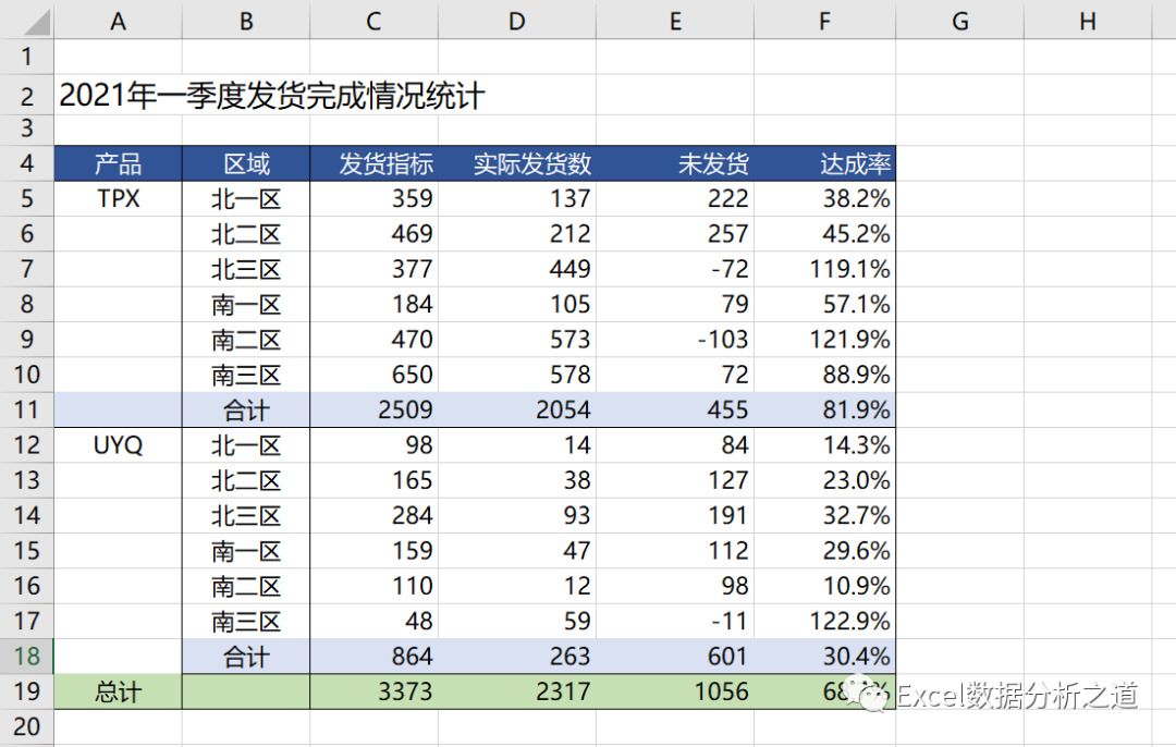 老板想要看的第一个数据,肯定是总的情况了也就是最后一行总计了,因此,你需要绘制这行数据的图表,那么问题来了,用什么图表才能清晰地表达出来这行总计数呢?