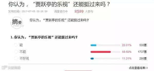 在凤凰网今天的一份“你认为,‘贾跃亭的乐视’还能挺过来吗?”的调查中,呈现出如下结果——