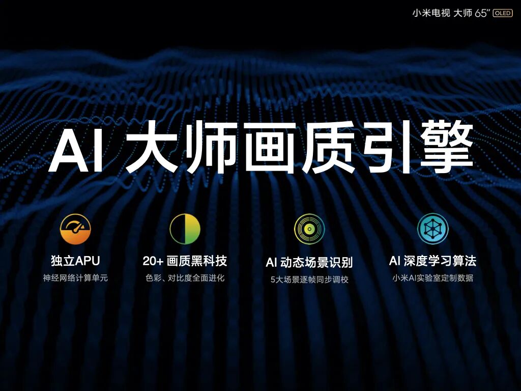 画质方面,官方表示小米电视大师系列搭载AI大师画质引擎,独立APU、20+画质黑科技、AI动态场景识别、AI深度学习算法,获主流HDR认证、杜比视界认证。