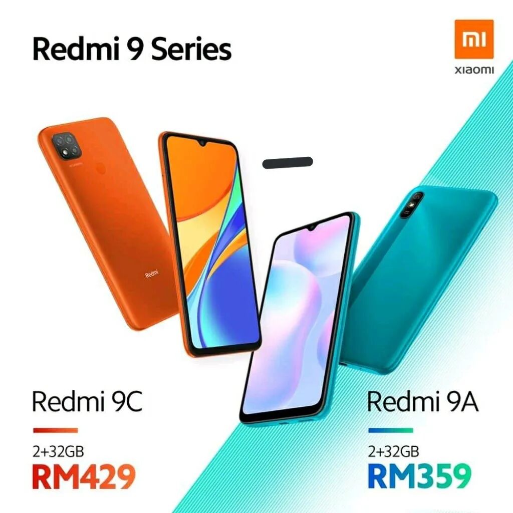 -Redmi 9A:采用6.53英寸720P水滴屏,前置5MP,后置竖排单摄13MP,联发科G25处理器,5000mAh,10W充电,2+32GB存储售价RM359,折合人民币约593元;(*RM为马来西亚货币单位)