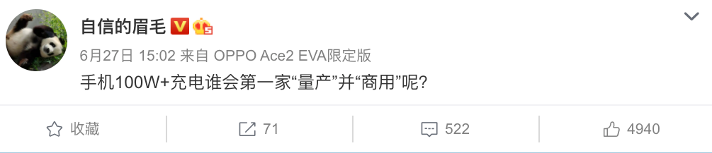 回到100W快充身上,在2019年上半年,小米和vivo就曾分别晒出了100W和120W超级快充技术,其中小米预热100W超级闪充可以实现17分钟充满1台开着机4000mAh电池的手机;而vivo则表示120W超级闪充可以实现13分钟完全充满一台4000mAh的手机。但两家均未表明何时量产。