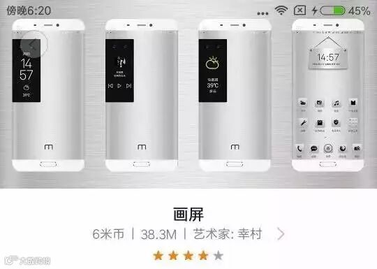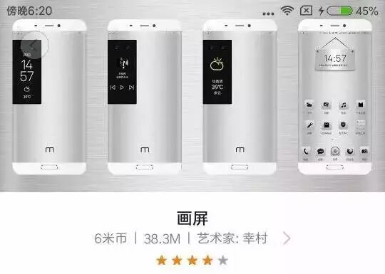 这个背面小屏幕被魅族称为“画屏”设计,巧的是,MIUI主题商店近日也上线了一个叫做“画屏”的系统主题。