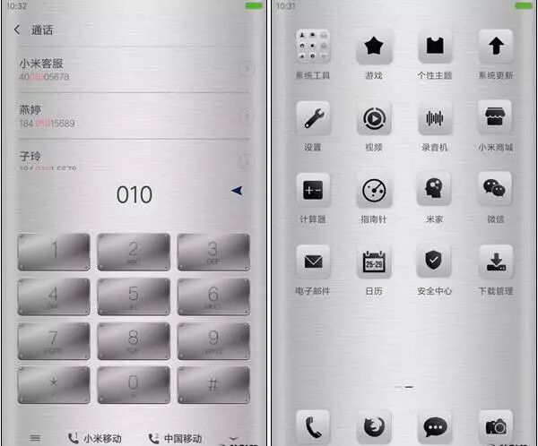 不过比较良心的是,这个主题并非蹭热点式的滥竽充数,而是一款相当不错的精品主题,系统种不同界面也有不同的金属效果,而锁屏上的“画屏”也并非装饰,它真的可以像PRO 7的“画屏”一样切换天气、时间与音乐播放功能!