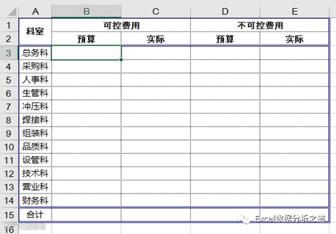 步骤2:插入一个工作表,设计汇总表的结构。由于要加总的每个工作表结构完全相同,最简便的办法就是把某个工作表复制一份,然后删除表格数据