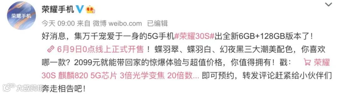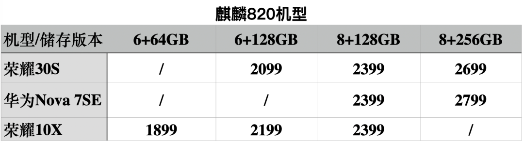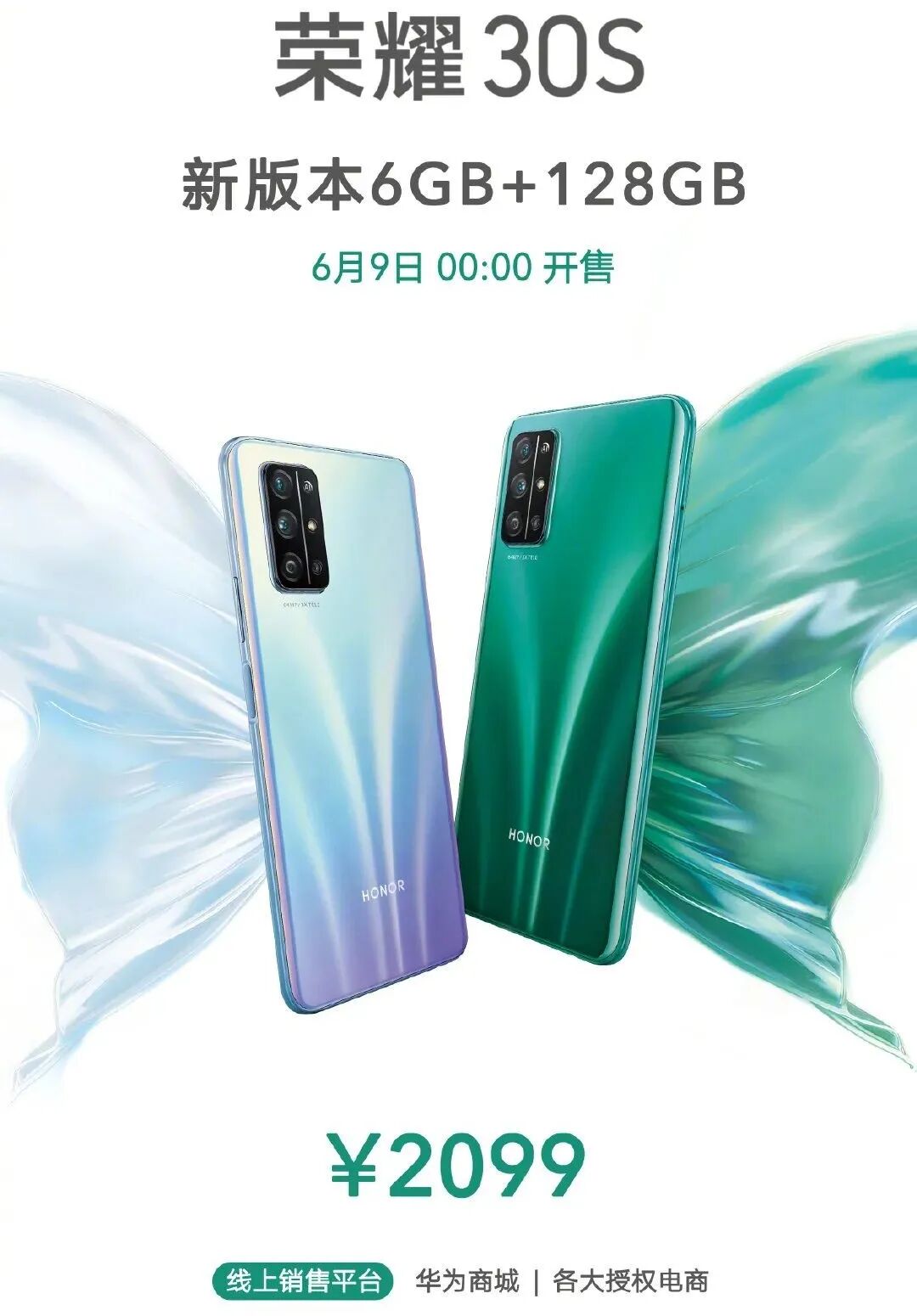 配置上,荣耀30S首发麒麟820,覆盖n1/n3/n41/n78/n79 5G频段,采用6.5英寸单挖孔LCD屏+侧边指纹,无高刷,玻璃后盖+塑料中框,机身厚8.58mm,重190g,后置四摄64MP+8MP长焦+8MP超广+2MP微距,4000mAh,40W有线快充,保留3.5mm耳机孔,不支持NFC。