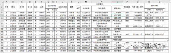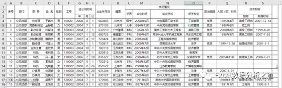 看到了这样一个表格:表不表,数不数,不仅有大量的合并单元格,其中的数据也极其不规范,例如出生日期数据不正确,进公司时间输入成了年月日三个数;信息主次不分,一些辅助数据也保存在了这样的表格中。