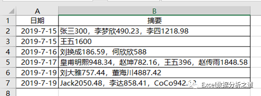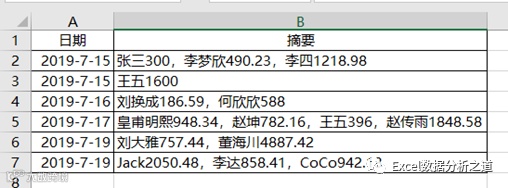 看到这样一个表格,把姓名和金额写在了一起,保存到了一个单元格(一列),此时,还如何进行计算和统计分析?