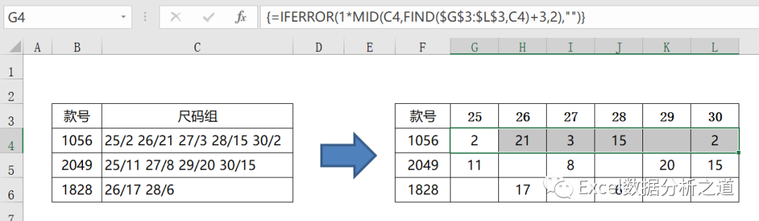 上篇文章介绍了如图使用函数来进行分列,回顾一下,如下所示: