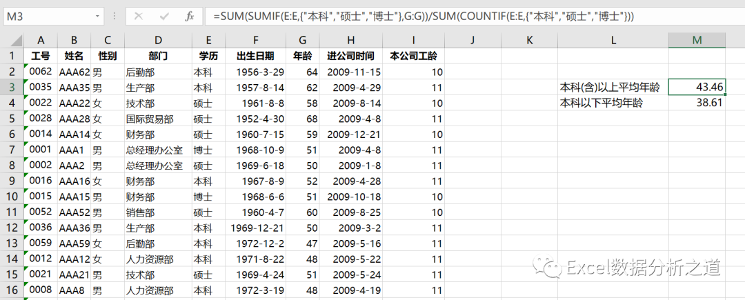如果要计算本科以上学历的平均年龄怎么算?如果要计算本科以下学历的平均年龄怎么算?