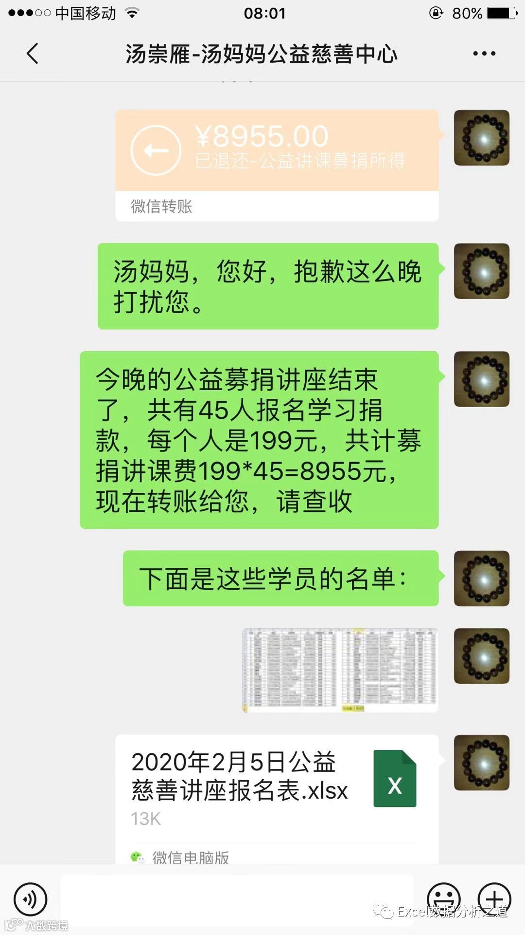 这次公益慈善募捐讲座,圆满结束。从发起到上课,才短短的4天,同学们纷纷解囊,为各地抗击病毒的前线医护人员尽自己的微博之力。