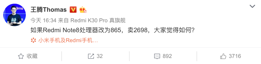 对此,王腾也在第一时间发文表示红米Note 8换865卖2699这条微博是开个玩笑,其还表示「即便真把红米Note 8改865卖2499以内应该没问题,不过不太符合我们对旗舰机的要求」,其还吐槽(Neo 3)「塑料中框,4800万非直出主摄、转子马达、LCD大下巴,千元机的这些配置大家买个3000的手机真的有必要吗?」