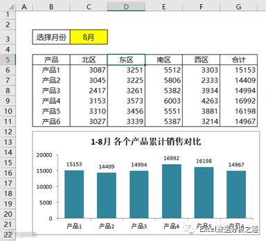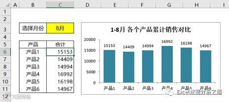 但是,在有些情况下,直接求解不见得是一个好思路。比如“任务2:如何分析指定月份下,各个产品的累计销售对比?”,这个问题,如果你想一步到位,用一个公式来解决,可就有麻烦了。