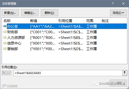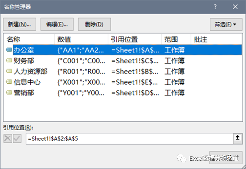 编辑、修改和删除名称,是在名称管理器中进行的。