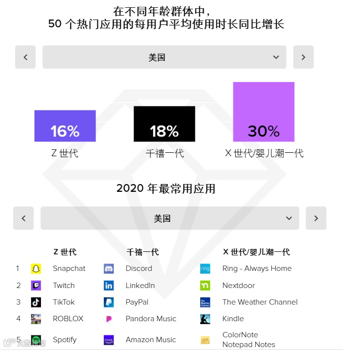 美国用户 2020 年移动设备的使用整体呈现出两个明显的特点。