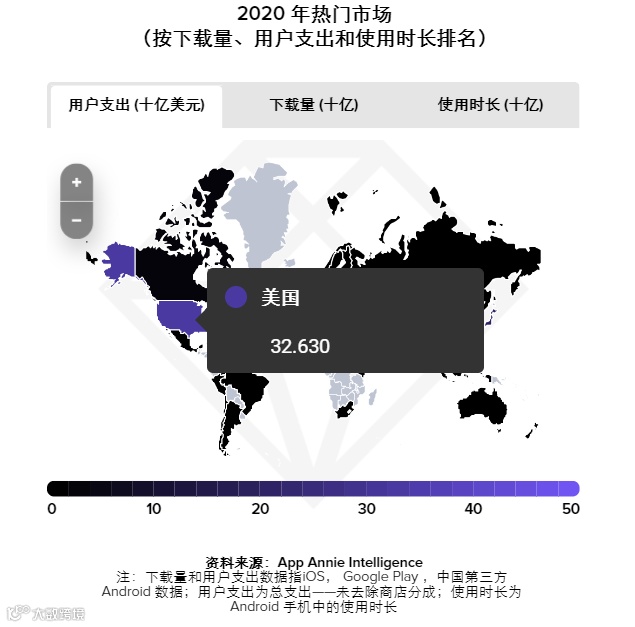 亚太地区隐藏了中国和印度的数据 | 数据来源:App Annie