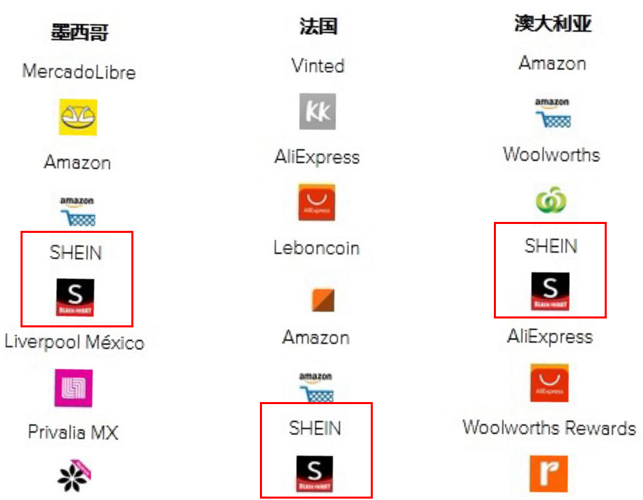 2020 年美洲部分国家热门购物 APP(评选标准: