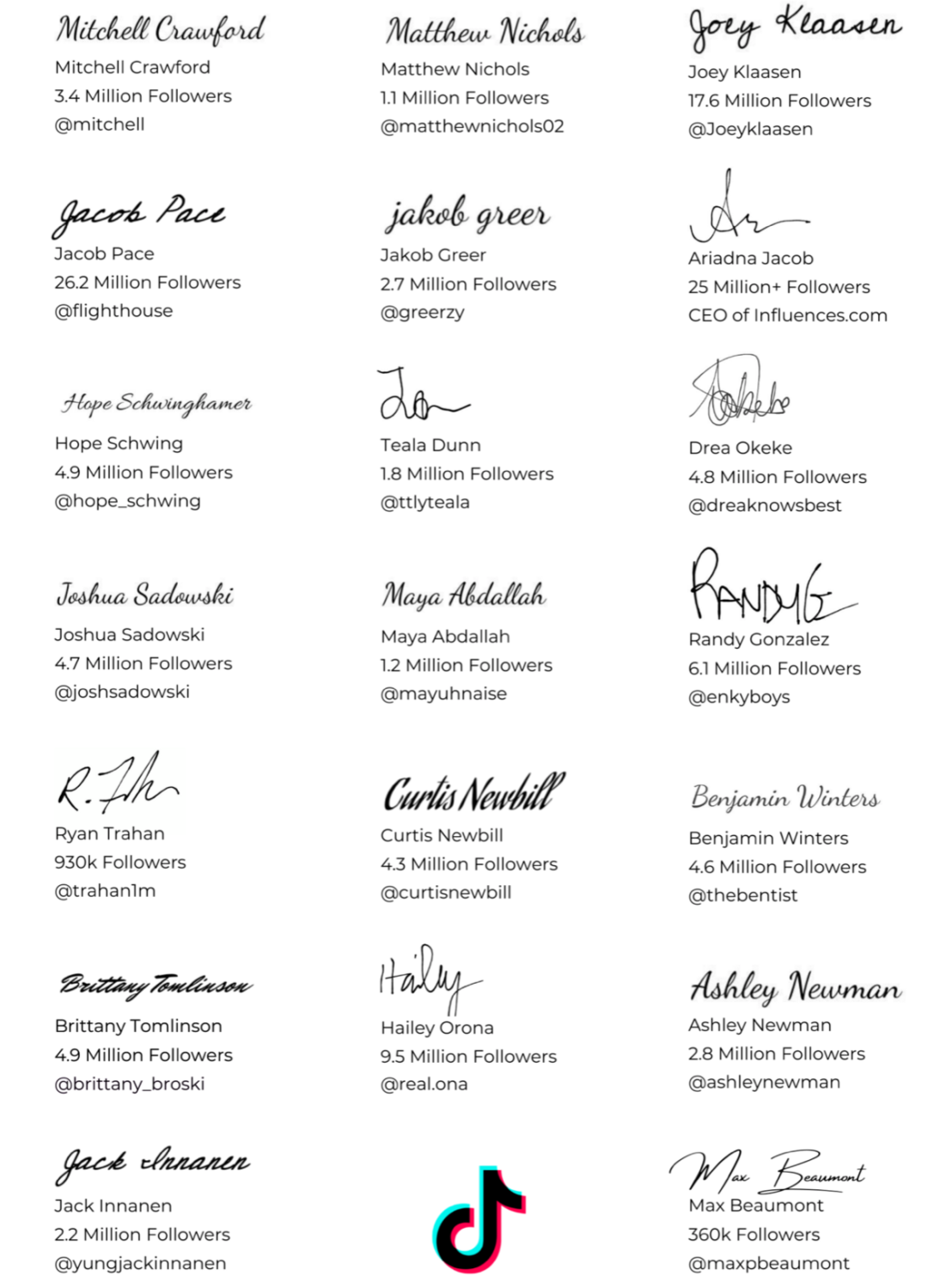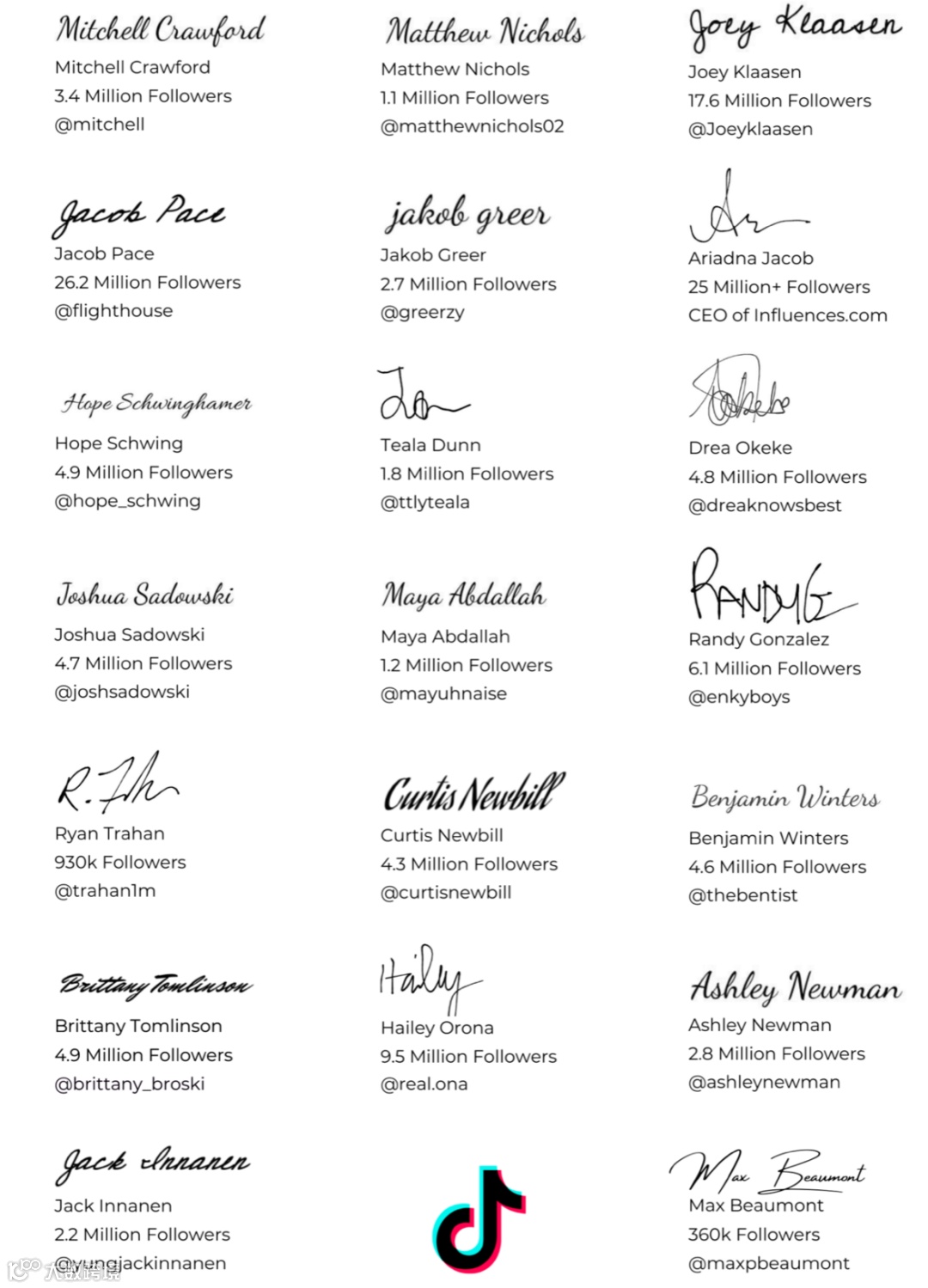 参与联名公开信的TikTok红人及他们的粉丝量级