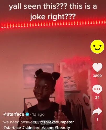 Starface是一款面向青少年的祛痘类护肤品牌,从成立到发展壮大都极为依赖TikTok红人的推广,该品牌的市场营销策略也大多是为TikTok量身定做的。当禁令事件爆出后,Starface万般无奈地通过短视频向粉丝们说再见,也有TikTok红人敷着祛痘产品发短视频称“这只是个玩笑对吧”?