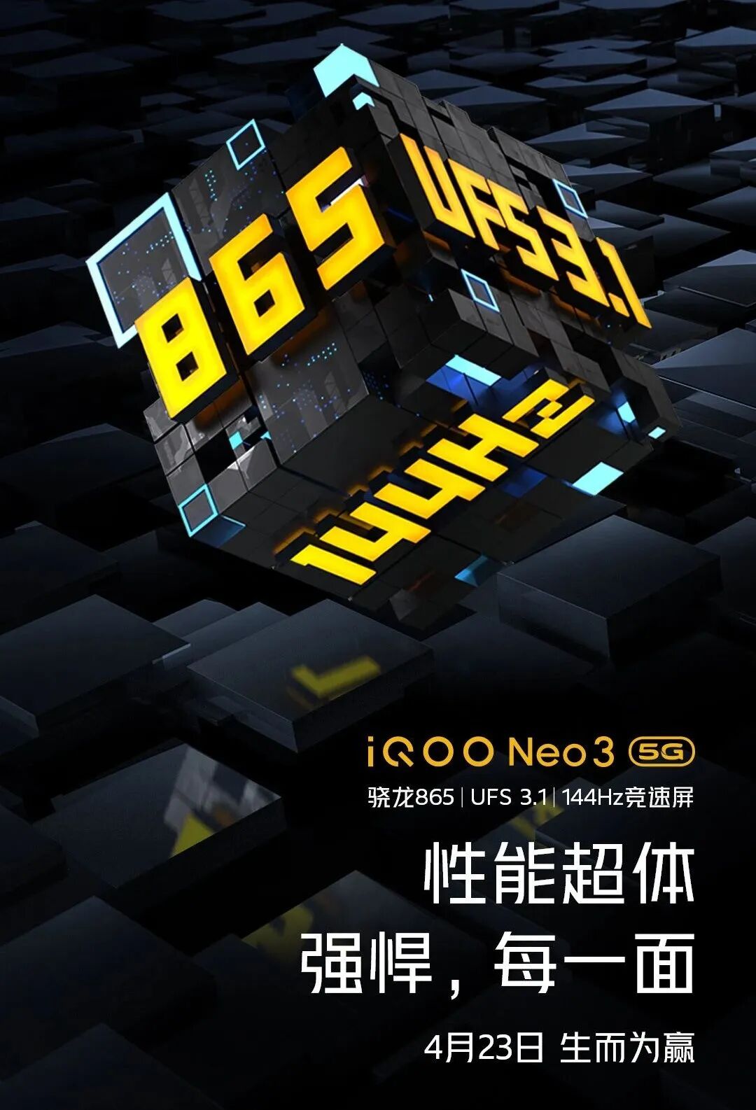 【新机】2998?iQOONeo3价格曝光 144Hz单孔屏865+UFS3.1
