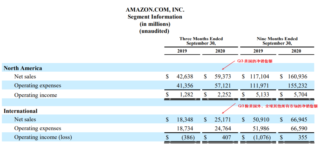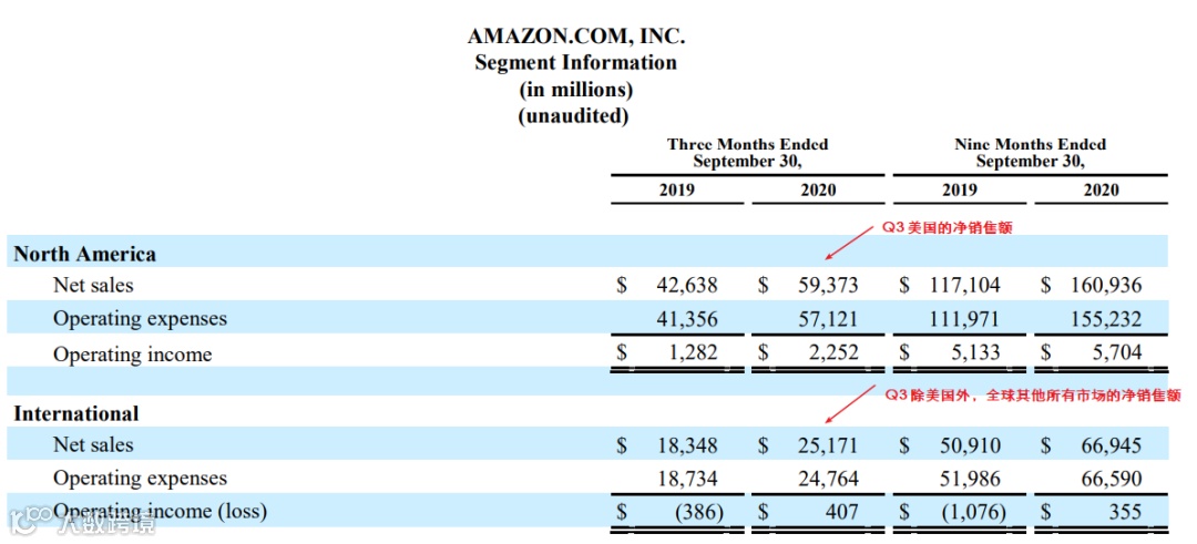 亚马逊 Q3 的净销售是 961 亿美金,较上年同比增长 37%。净利润是 63.31 亿美金,同比大涨 197%。如此大的体量,这个增速是非常可怕的。但投资人到底哪里不满意呢?我们可以把 Amazon 的收入拆开看。