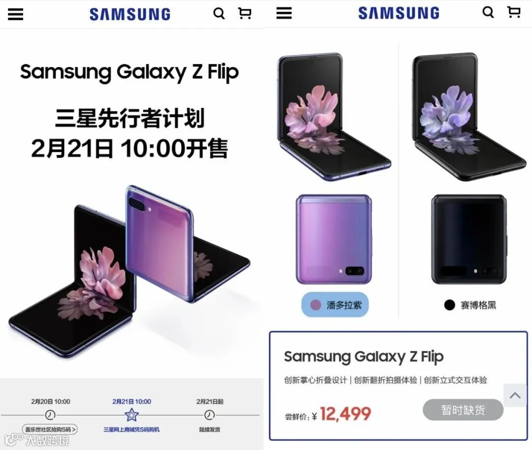 小白在10:03的时候登录官网已经是没货状态,价格方面,三星Galaxy Z Filp折叠屏国行先行者计划尝鲜价是12499元,多退少不补,抢先订购可享受优先发货,12个月优惠换屏,5折更换电池等服务。