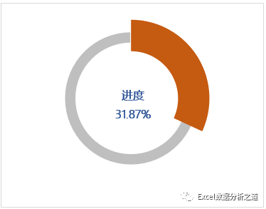 这是个完成分析问题,可以使用仪表盘,温度计,两轴柱形图等等,也可以使用下面的圆环图来表示。