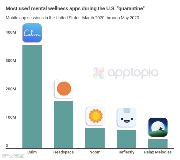 而根据最近 Apptopia 发布的报告中也可以看出,在疫情期间美国的 Calm 的会话时长要远高于其他产品。