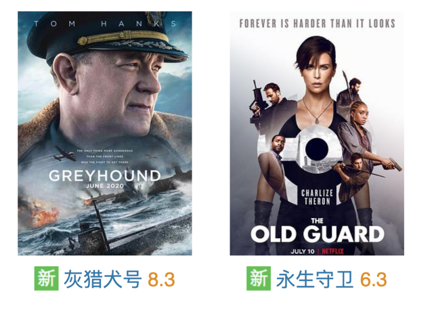 虽然除日韩之外的全球影市,还没有成规模的新片陆续上映,但是对于网络电影来说,上周末依旧是活跃的一周。在周五当天,由Netflix出品的奇幻动作片《永生守卫》与Apple Tv+出品的二战海战题材影片《灰猎犬号》选择同日上线,