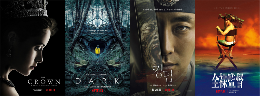 提到Netflix,首先想到的必定是大量的高口碑剧集,从2013年的《纸牌屋》开始,几乎每一年都会有2-3部Netflix现象级高分剧集火遍全网。最近几年的《怪奇物语》《毒枭》口碑热度持续长红,甚至夺走了《权力的游戏》完结后HBO的荣耀。而除了Netflix原创美剧之外,Netflix原创英剧《王冠》《性教育》、原创德剧《暗黑》、原创韩剧《王国》与原创日剧《全裸导演》也都相继成为爆款,让全球各国的观众都为之疯狂。