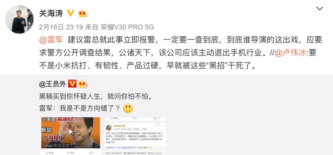 至于到底是谁发的“通稿”,没证据咱也不知道。小米卢伟冰和荣耀营销部副部长关海涛也有对该“通稿”进行斥责。小白最后想说的是,兼听则明,独立思考。