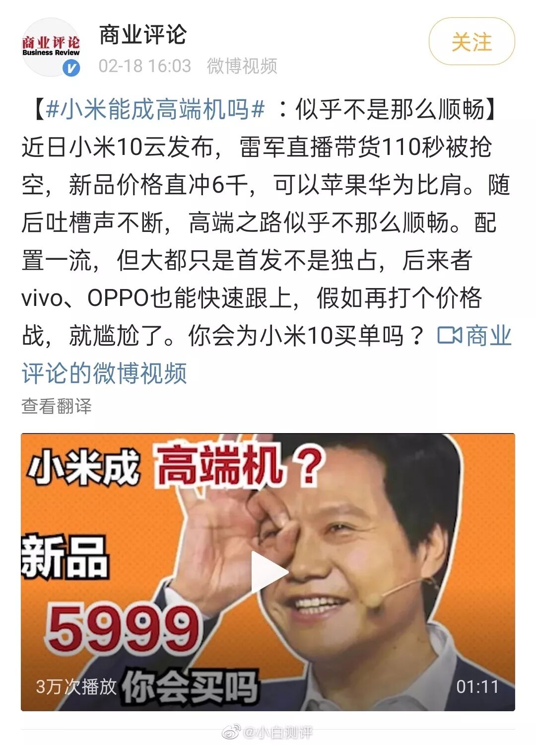 视频首发于@商业评论 ,如果是正常引用都没事,但这些“通稿”的视频、内容明显是带节奏,包括我们的真人镜头,全都没经过我们同意,有对我们有构成误解的隐患。经联系后,原博主已经删除我们的一些原创镜头并致歉,但网络上可能还在流传之前带有我们镜头的版本,小白在这里特此说明,跪求别拿我们当枪使,如果有小伙伴看到相关视频,不代表小白测评观点。