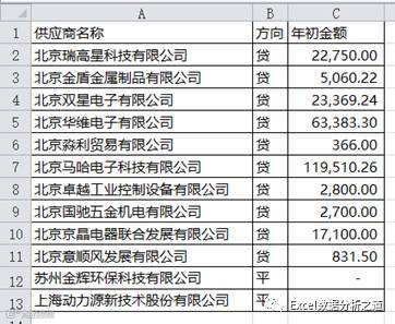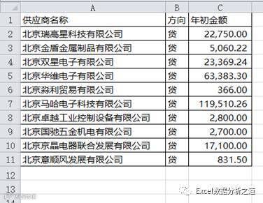 年初余额也是固定不变的数据,每年初把上年度的年末余额复制粘贴过来即可。如果本年度增加了新供应商,那么该供应商往下依次输入,年初余额输入0。年初余额表设计如下。