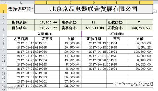 图9 自动汇总统计各个供应商每个月的应付数据
