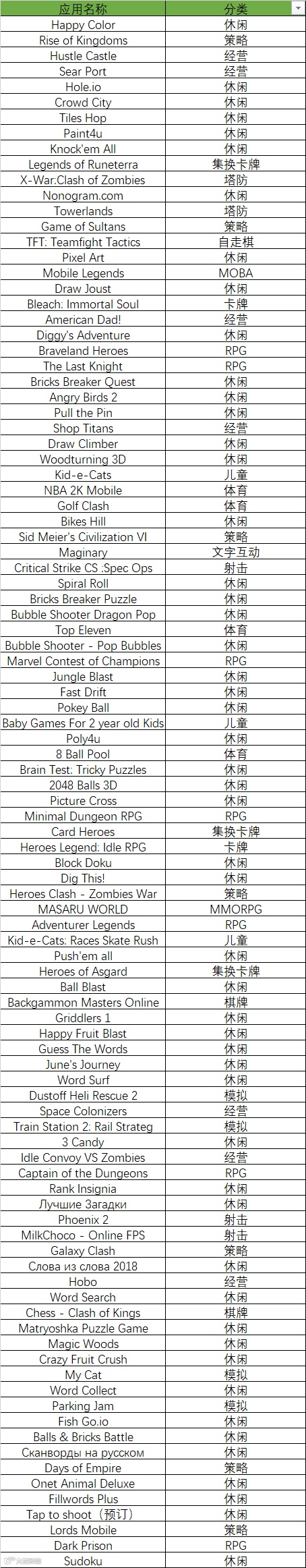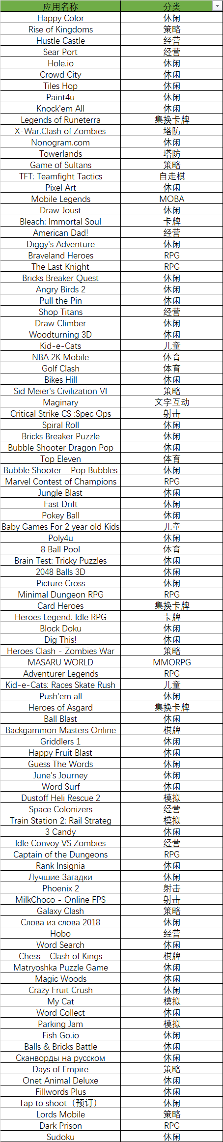 游戏投放TOP榜单占半数:休闲游戏热度仍在