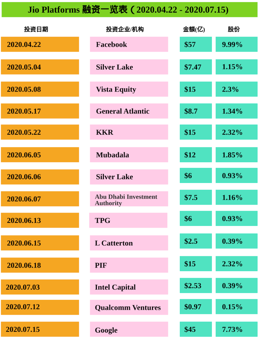 导读:谷歌、脸书、英特尔等巨头,纷纷入股Jio Platforms。