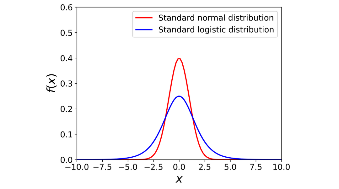 为随机噪声具有标准逻辑分布(与上面环环相扣)。如图下图所示。例如,在图中,