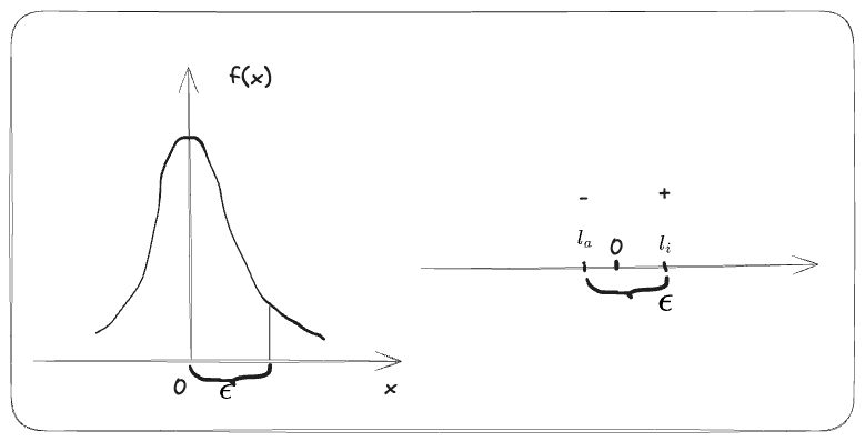 假设 是一个实数。我们可以将其显示为横轴上的一个点(下图)。根据 的值,我们有多大把握确定它的符号呢?如果我们知道 的具体值,就可以确定它的符号。例如,如果我们知道 ,我们就可以确定它是一个正数。