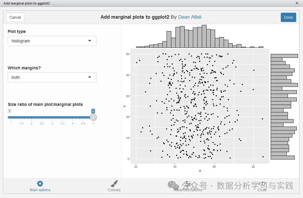 ggExtra 通过添加边际直方图、箱形图或密度图来增强 ggplot2 散点图。