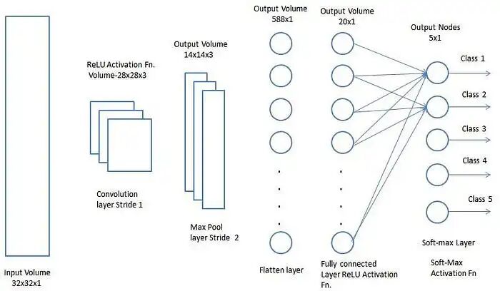 现在,我们已经将输入图像转换为适合多层感知器的形式,我们将把图像扁平化为列向量。扁平化后的输出被送入前馈神经网络,并在每次迭代训练中应用反向传播。在一系列的迭代过程中,该模型能够区分图像中的主要特征和某些低级特征,并使用Softmax技术对其进行分类。